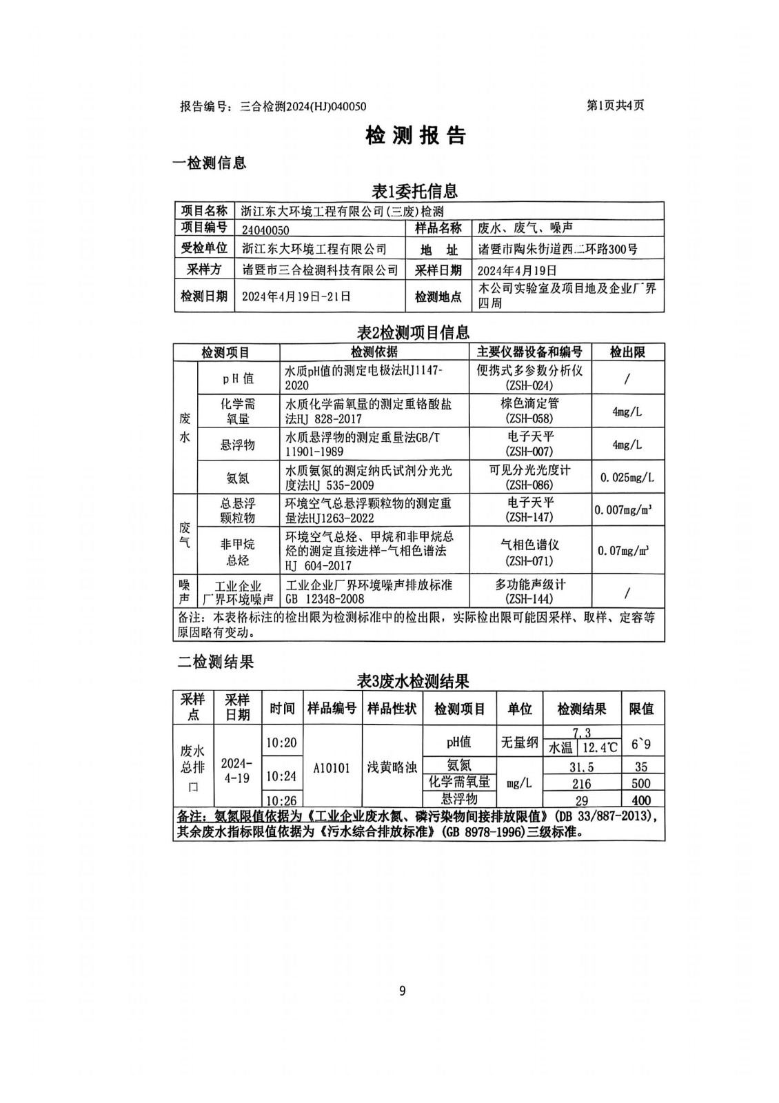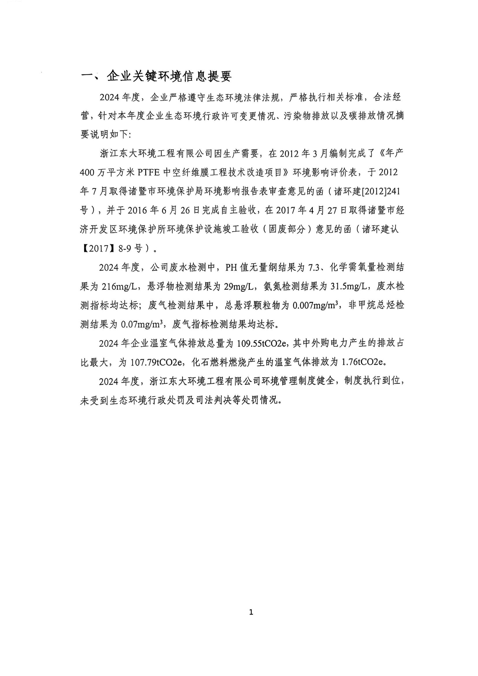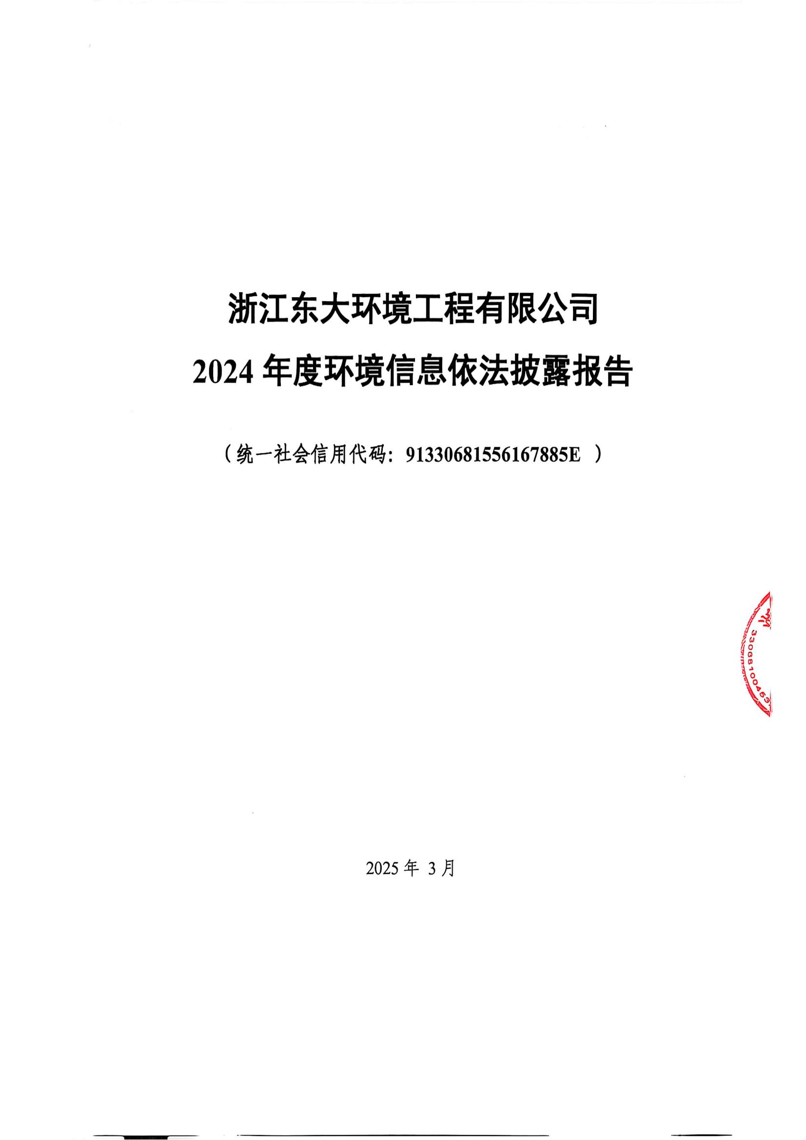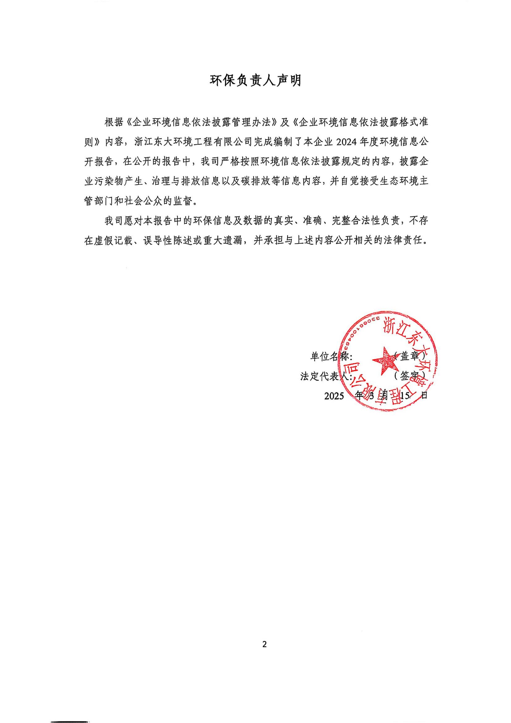浙江東大環境工程有限公司 2024 年度環境信息依法披露報告