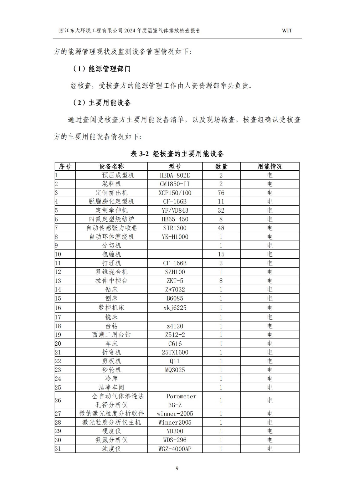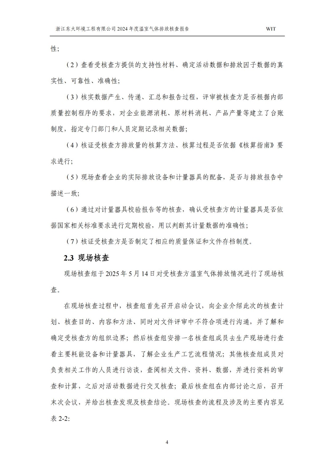 浙江東大環境工程有限公司2024年溫室氣體排放核查報告
